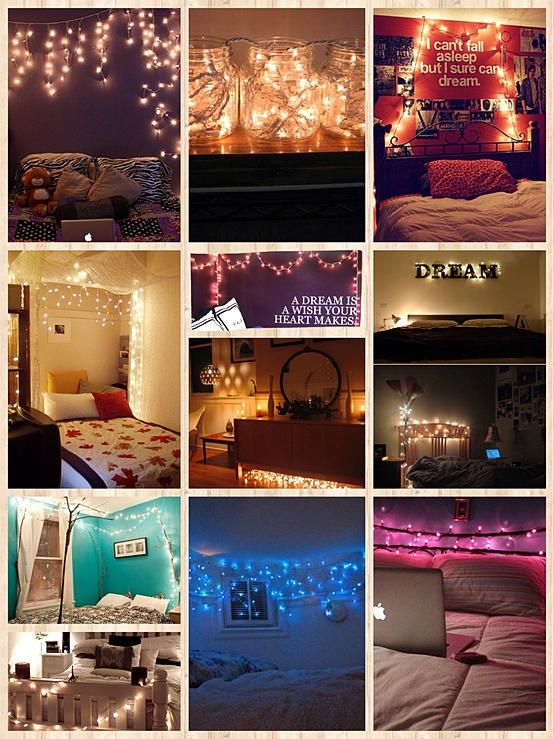 - There are tons of ways to incorporate those simple Christmas lights to your room, you can turn it into a new & fancy bedroom. Across the ceiling, around your mirror or window, attached to your headboard,under some furniture, inside some jars; the possibilities are endless, you just need a bit of imagination.
